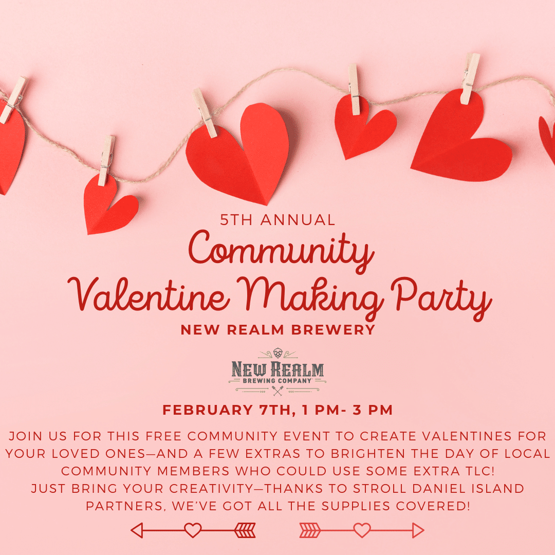 Join Stroll Daniel Island for their 5th Annual Valentine Making Party—this year at New Realm Brewery.