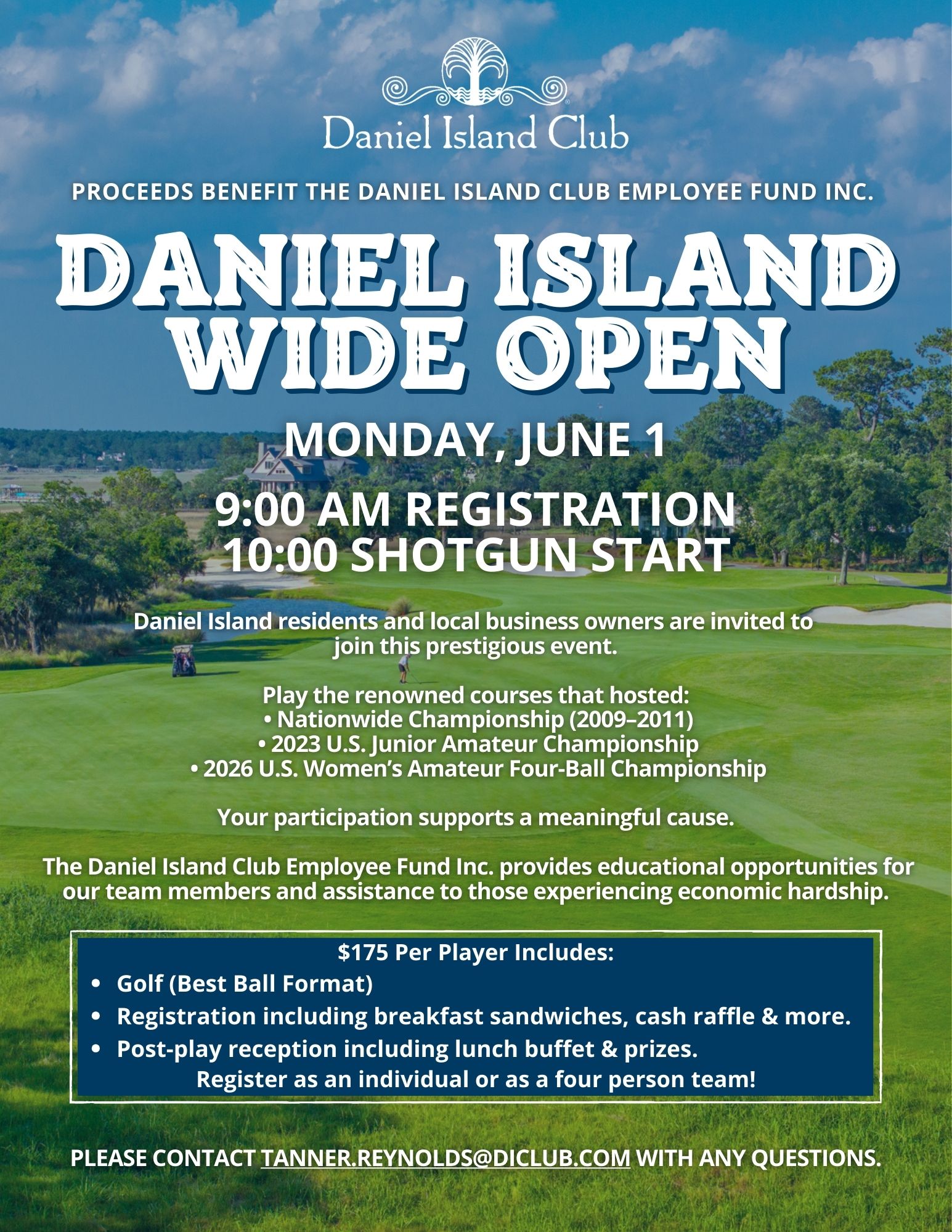The tournament benefits The Daniel Island Club Employee Fund, which provides educational opportunities for their team members and assistance to those experiencing economic hardship.