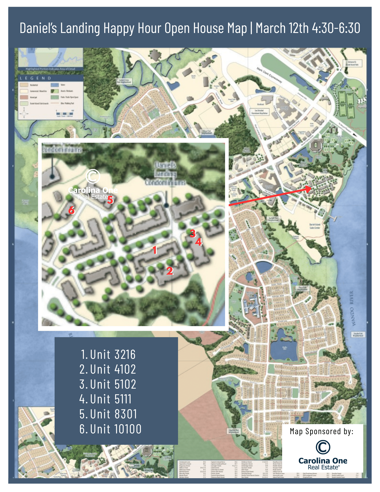 Open House Happy Hour to view 1,2, and 3 bedroom condos in Daniels Landing FOR SALE! Look for the red balloons and enjoy snack and beverages and check out these beautiful condos.